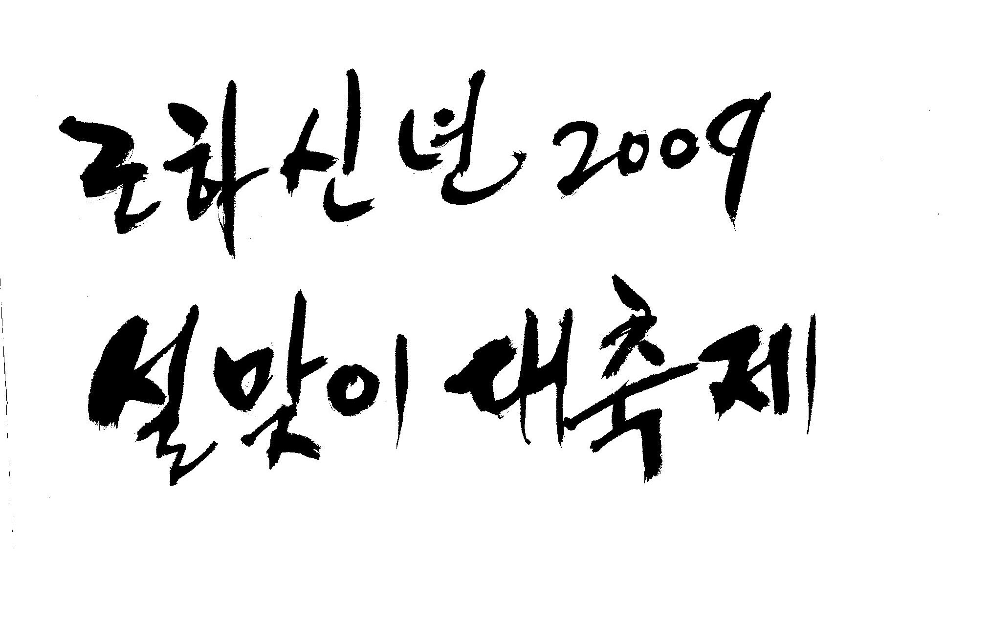 근하신년 2009 설맞이대축제 캘리 부탁드려요. 김철호 일반 3 16387 2009.01.14 10:45 > > A3 전단지 타이틀로 쓰려고 하는데요. > > ''근하신년 2009 설맞이대축제'' 캘리 부탁드립니다. > > 많은도움이 되주셔서 감사합니다. > > 유용하게 쓰세요..